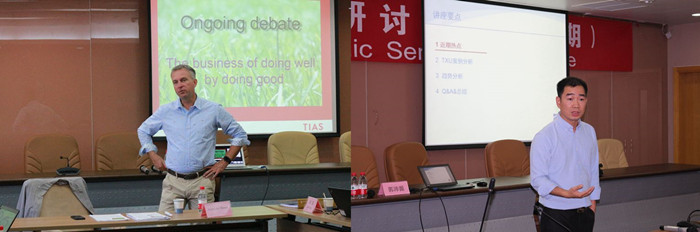 2017年9月6日至7日,蒂尔堡大学TIAS商学院Jenke ter Horst教授讲授《社会责任投资》(“Social Responsible Investment”)课程。在两天的课程中, Jenke ter Horst首先通过生动的案例,引入社会责任投资问题。接下来教授从追溯历史开始,讲到社会责任投资的含义,对相关理论模型进行了详细的讲解,引入了国际上对此问题的前沿文献研究。期间,商道纵横总经理兼商道融绿董事长郭沛源博士受邀以《绿色金融与社会责任投资》为题开设了一场专题讲座。从实践角度,郭沛源博士讲解了中国社会责任投资和绿色金融的发展现状,并运用TXU公司的案例分析,让同学们通过角色扮演体验了在面临社会责任投资问题时金融机构的应对策略。