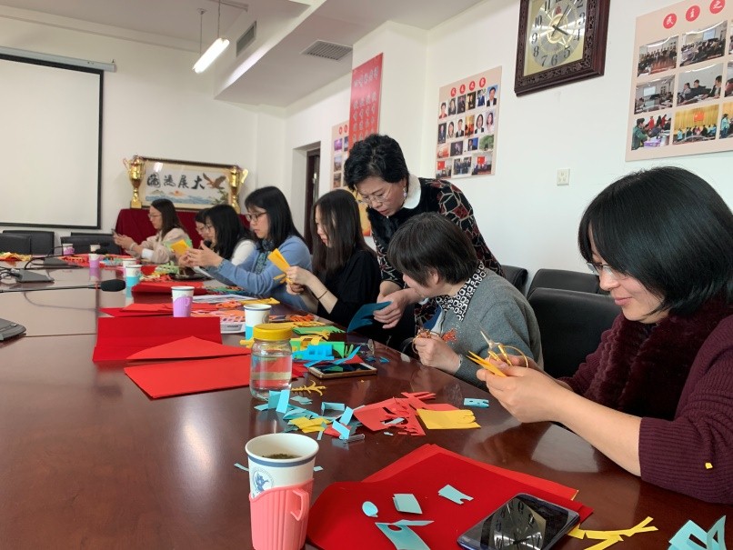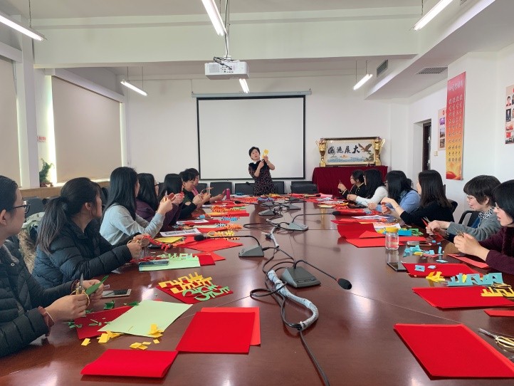 3月7日下午,太阳集团城娱8722分工会在学院南路主教913会议室举办了以“传承中华文化,弘扬剪纸艺术”为主题的“三·八”妇女节庆祝活动,特邀请国际文化与交流学院原绍锋教授来进行指导,学院党委书记葛仁霞和二十余位女教工参加了活动。